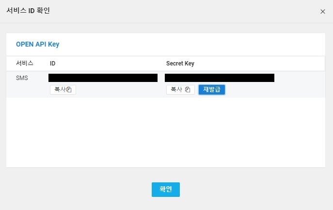 secretKey = 프로젝트 > 서비스 ID의 Secret Key