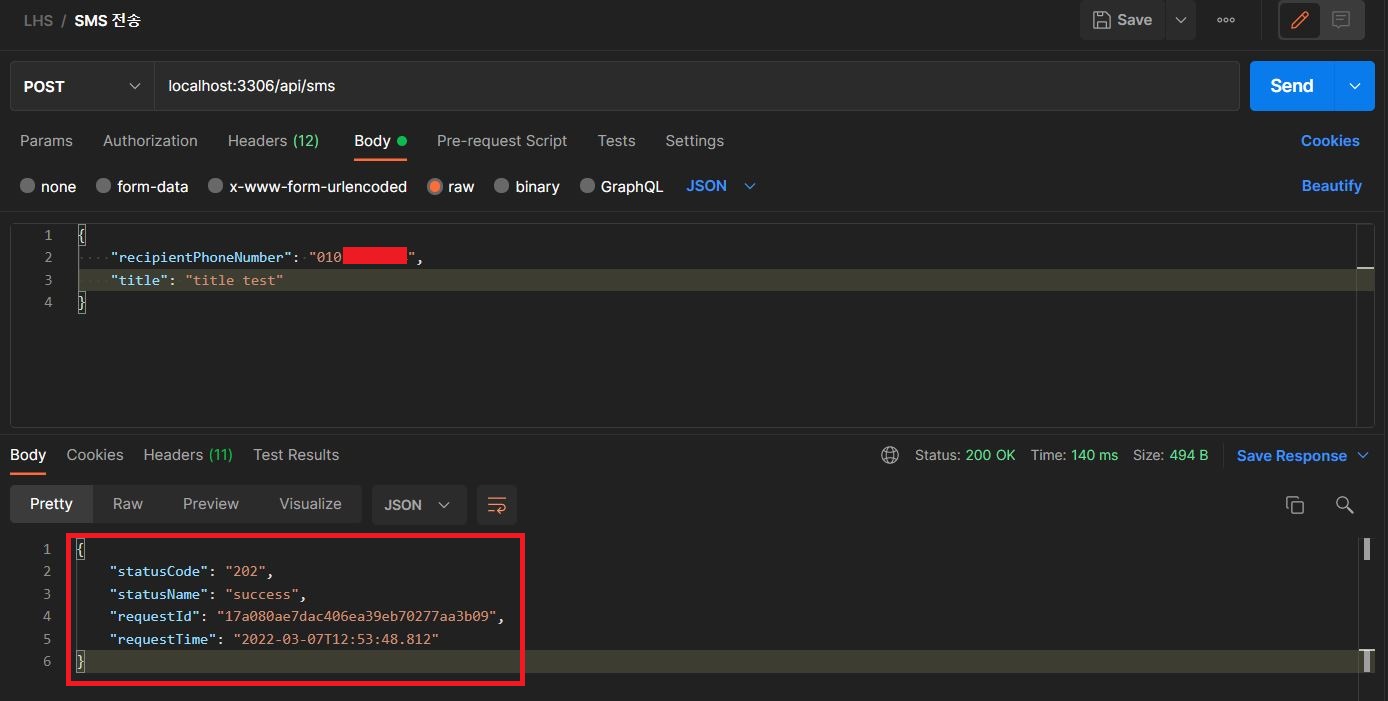 String data = smsService.sendSms(request.getRecipientPhoneNumber(), request.getContent());