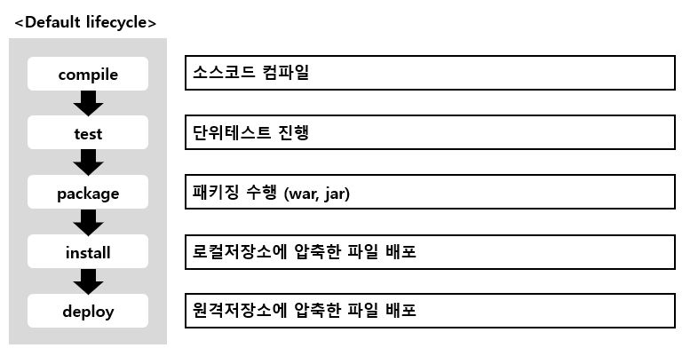 Phase는 의존 관계를 가지고 있어 해당 phase를 수행하기 위해서는 이전 phase가 수행된 다음 실행됩니다. ex) mvn install 실행 시 install 전까지의 단계들을 모두 수행한 다음 실행됨.